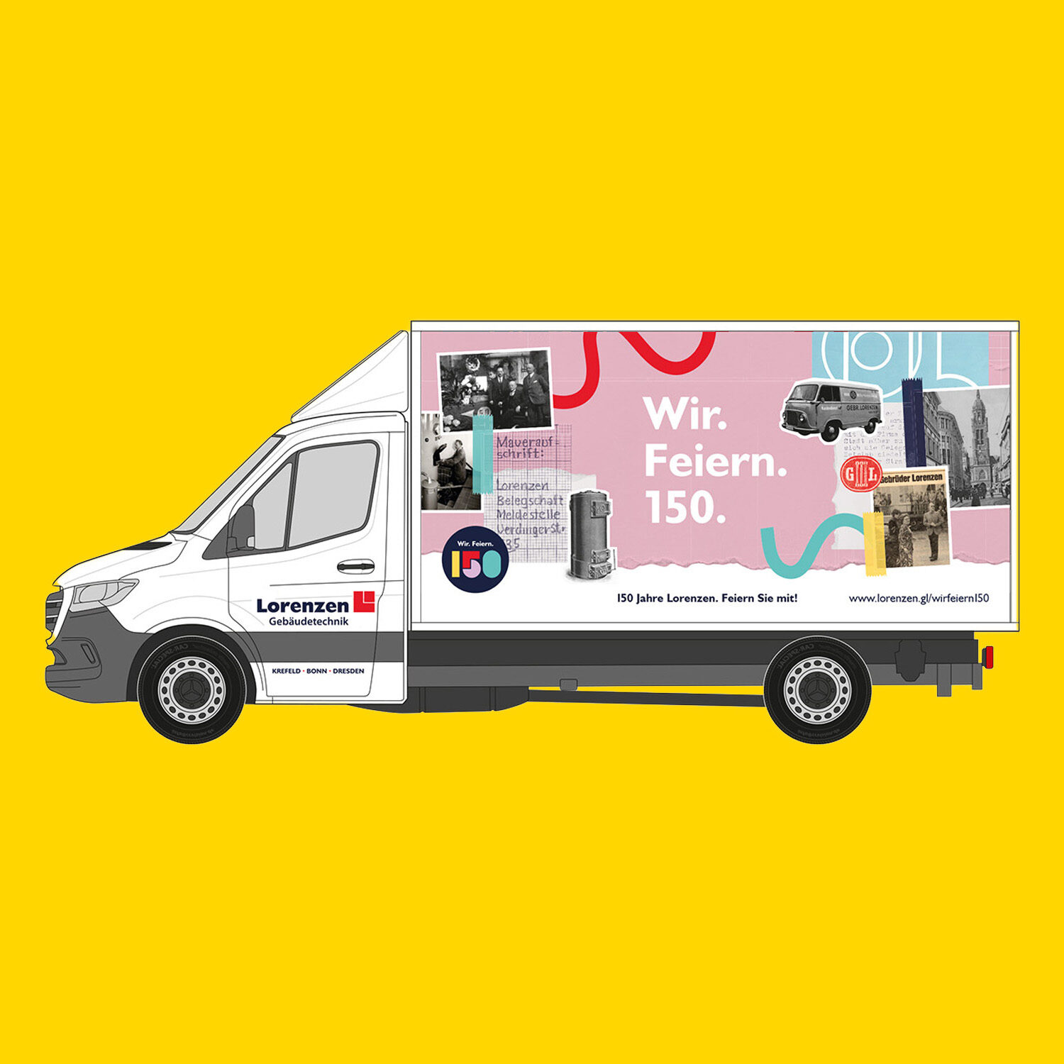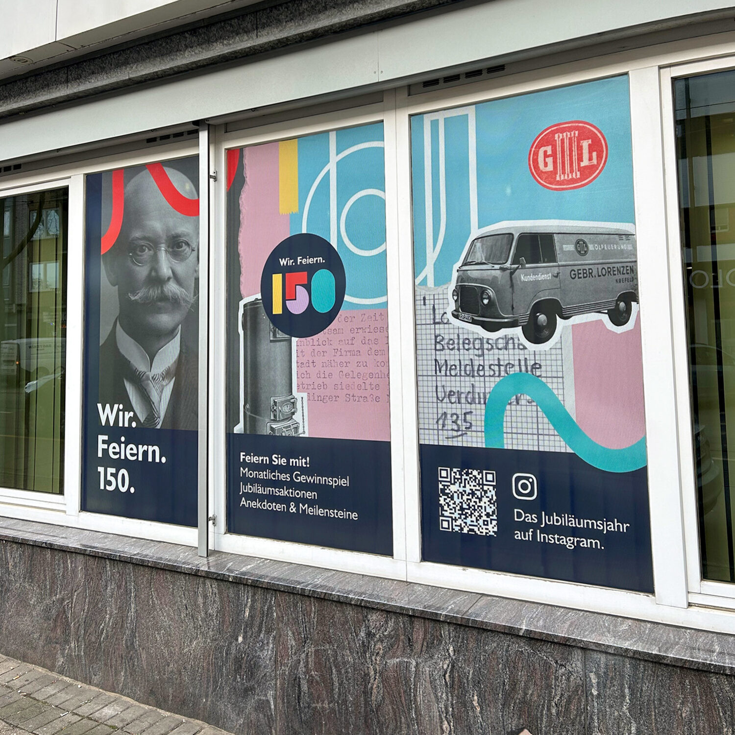 150 Jahre Unternehmensgeschichte sind ein besonderer Anlass. Für das Jubiläumsjahr des Krefelder SHK-Traditionsunternehmens Lorenzen entwickelten wir eine ganzjährige Kampagne unter dem Motto „Wir. Feiern. 150.“. Ziel ist es, das Jubiläum sichtbar zu machen – digital, analog und im Stadtgebiet von Krefeld.